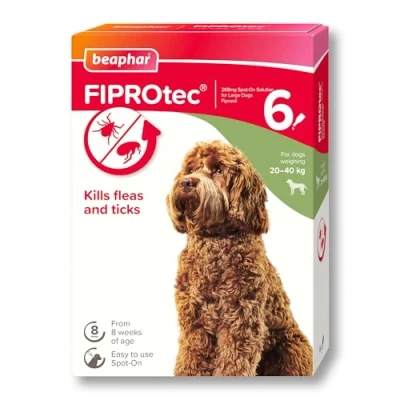 Beaphar FIPROtec Spot On for Large Dogs (2040kg) Kills Fleas & Ticks Vet Strength Treatment 6 Pipettes