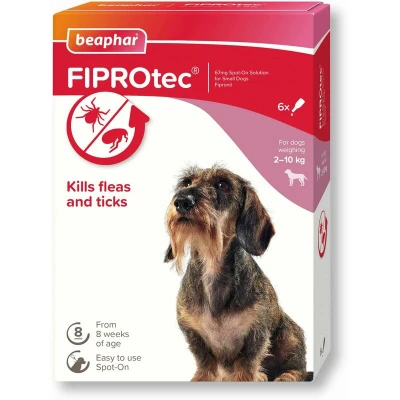 General description Beaphar Fiprotec Spot On Solution for Small Dogs effectively kills fleas and ticks, providing protection for small dogs. It continues to eliminate fleas for up to 5 weeks and ticks for up to 4 weeks, making it an essential part of a regular flea control routine, especially for dogs that spend a lot of time outdoors. Technical specifications Suitable for dogs over 12 weeks of age Weight range: 5-10 kg