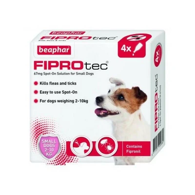 General description Beaphar Fiprotec Spot On Solution for Small Dogs effectively kills fleas and ticks, providing protection for small dogs. It continues to eliminate fleas for up to 5 weeks and ticks for up to 4 weeks, making it an essential part of a regular flea control routine, especially for dogs that spend considerable time outdoors. Technical specifications Suitable for dogs over 12 weeks of age Weight range: 5-10 kg