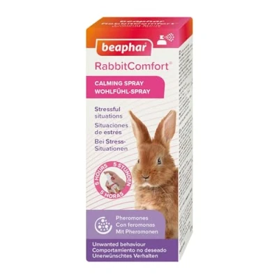 A SPRAY OF COMFORT WHERE YOUR RABBIT NEEDS IT MOST: Ideal for targeting specific areas of the home or hutches where your pet shows signs of stress or needs reassurance. PROMOTES FEELINGS OF REASSURANCE AND WELL-BEING: Rabbits communicate through natural messages called pheromones. The Rabbit Appeasing Pheromone (RAP) is naturally produced by the doe when she nurses her kits. This provides a continuous and reassuring message to let them know that this is a safe and calm area for them to be in. Beaphar RabbitComfort contains a copy of this pheromone which is instantly recognisable to all rabbits helping to comfort them and reduce unwanted behaviour. EASY-TO-USE: Use 9 sprays per application and wait 15 minutes before exposing the area to your pet. Beaphar RabbitComfort Calming Spray lasts up to five hours and can be reapplied as necessary. Do not apply directly onto your rabbit. SCIENTIFICALLY RECOGNISED: Pheromone technology is widely recognised by behavioural experts and vets for its ability to create an instinctive calming response for your rabbit. SUITABLE FOR RABBITS AND KITS: Specifically designed for rabbits and kits of all ages. It calms without sedating and does not affect humans or other pets.