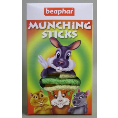 General description Beaphar Munching Sticks are a complementary feed designed specifically for rodents and pet rabbits. These tasty snacks satisfy the natural gnawing instinct of small animals, making them an ideal treat for a variety of pets. Technical specifications Weight: 150g Usage Suitable for guinea pigs Ideal for hamsters Perfect for rabbits Great for chinchillas Can be enjoyed by other small animals