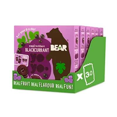 BEAR Blackcurrant Yoyos Dried Fruit Rolls Healthy Vegan 20g 6 x 5 Packs (Pack of 30)