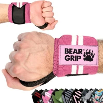 ESSENTIAL WEIGHT LIFTING EQUIPMENT: Built for comfort and stability during exercise, the design of our wrist wraps provides excellent support while the optimum blended cotton and elastic material keep you dry and comfortable REACH YOUR FULL POTENTIAL: Bear Grip wrist wraps are designed to enhance your lifting experience, providing added stability and control for your heaviest lifts. With Bear Grip, you’ll have the support needed to push your workout limits and achieve your personal best UNIVERSAL FIT FOR ALL: Our wrist wraps are 18" long and 3" wide, making them easily adjustable for both men and women. The stretchy thumb loop and flexible material ensure a customised fit for all wrist sizes. DURABLE & RELIABLE BUILD: With over a decade in the fitness industry, we stand by the durability of our wrist wraps, engineered to withstand intense workouts and provide reliable support. GET YOUR LOOK: With different colour combinations to choose from, you’re spoiled for choice. Our gym wrist straps are made from heavy duty blended cotton, while the extra wide closure tab and engineered stitching provide you with a strong and steady hold.
