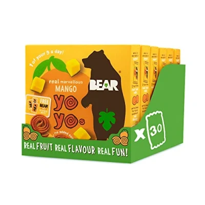 BEAR Mango Yoyos Dried Fruit Rolls Healthy Vegan 20g 6 x 5 Packs (Pack of 30)