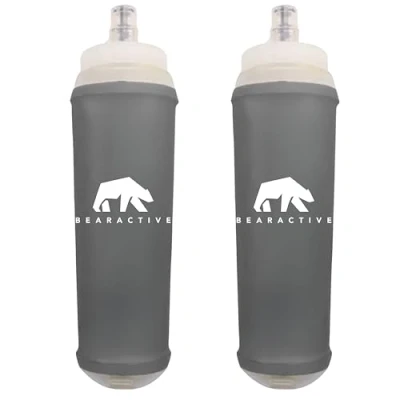 Bearactive 2 x Lightweight Running Water Bottle Soft Flask 500ml TPU BPA Free Plastic, Leak Proof Foldable Bottle, Collapsible for Vests and Belts (Black, Pack 500ml)