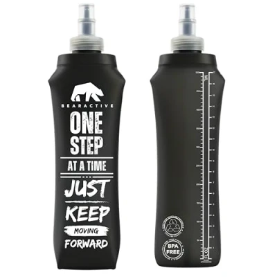 Bearactive Lightweight Running Water Bottle Soft Flask 500ml TPU BPA Free Plastic, Leak Proof Foldable Bottle, Collapsible for Vests & Belts (Style 1 1pc 500ml, Black)