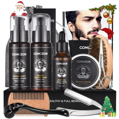 🧔【Cost-effective , All-in-One Bare Care Set】 🥇An excellent choice for beard grooming, including beard growth set with beard shampoo, beard conditioner, beard oil, beard cream, beard brush, beard comb, beard scissors, storage bag, e-book etc. 🍀 【Pure Natural Ingredients Beard Growth Kit】🍋 Mens Grooming Kit uses a natural formula that does not damage the skin or beard. Beard shampoo can cleanse excess oil and reduce itchy beard. Beard care products can moisten and soften beards. Beard oil helps repair the beard, making it shinier and thicker. Beard balm can help reduce the roughness while deeply conditioning the beard! 🥇 【Complete Razor, Beard Growth Set】 🌈The Beard Kit for Men includes stainless steel scissors, pig hair beard brushes and double-sided combs. Professional stainless steel razor is made of stainless steel and is safer than conventional razors. It contains a beard roller with a needle diameter of 0.25mm, which can safely stimulate hair follicles, promote beard growth, reduce wrinkles and improve pigmentation. 🎁 【Perfect gift, Be a confident man】 💝This beard care set men makes beards softer, healthier and suitable for all beards. Grooming kit for men is packed in a luxury gift box. It is great gift for husband, fiance, boyfriend, father or son, suitable for Father's Day, Birthday, Valentine's Day, Anniversary, Christmas. 💝 【Portable Beard Care Products Set, Easy to carry】 🏆Beard care box in a box or bag, easy to carry, suitable for travel, always keep the beard clean and keep a confident demeanor.