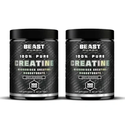 Beast Creatine Monohydrate Powder 2 Pack 200 Servings (1KG) 100% Pure Micronised Unflavoured
