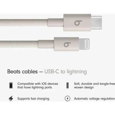 Beats USB C to Lightning Woven Cable, Fast Charging, Durable/Tangle Free, Compatible Charger for Apple Devices w Ports (1.5 m) Surge Stone
