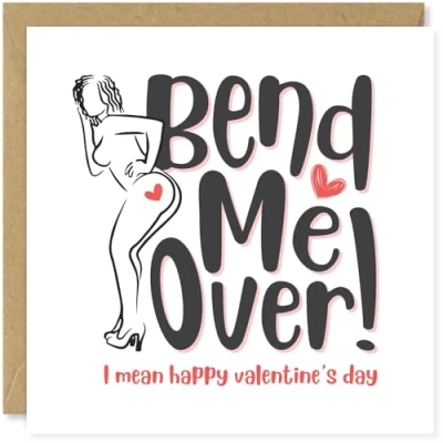 ❤️ VALENTINE'S CARD: Add a little cheeky fun to your special day with this funny Valentine's Day card for him! Perfect for your husband or boyfriend, it features a playful and bold message: "Bend me Over! I mean, Happy Valentine’s Day." Whether you're looking for something saucy or just need to lighten the mood, this card is the perfect fit for your special someone. 🌟 HIGH QUALITY: Made in the UK and professionally printed on thick 350gsm FSC certified card. Comes with a recycled and compostable eco kraft envelope. 💌 SIZE: Our cards are 148x148mm (6 x 6 inches) when folded and are blank inside, leaving plenty of room for your personal and sentimental messages. 🇬🇧 ABOUT US: Greetings from Beau Willows, your quirky card companion based in the heart of Kent, UK! We specialise in crafting cards for every occasion, adding a dash of humour to heartfelt messages. Let's turn your moments into memories with a smile!