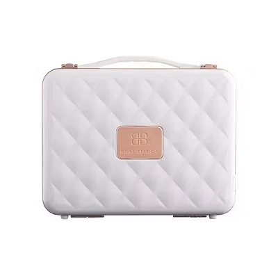Beautifect Box White Large Makeup Bag with LED Light Up Mirror Quilted Metallic Vanity Case Travel Cosmetics for Women Toiletry & Make Organiser Compartments Brush Holders