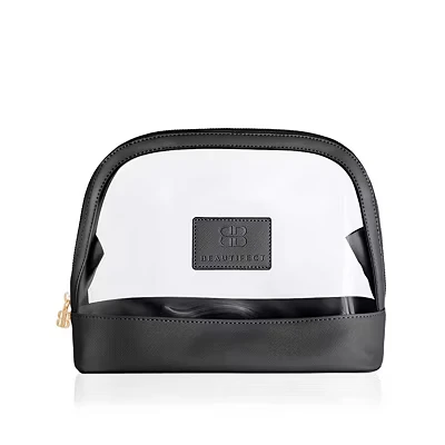 SPACIOUS ORGANISATION – Carry your toiletry essentials in style with the Beautifect Toiletry Bag. This clear travel toiletries bag is durable and spacious, featuring a flexible zippered compartment to ensure your beauty products are safe, secure, and easy to find EASY MAINTENANCE – This travel toiletry bag is designed for practicality and style. The clear exterior is easy to wipe clean, requiring minimal effort to keep it looking pristine. The clear bag material is also water-resistant, protecting your items from spills and leaks TRAVEL FRIENDLY – This clear toiletry bag is the perfect size for storing your frequently used toiletry essentials while keeping them organised. It features an ergonomic, space-saving design with an angled closure that fits effortlessly into any luggage, maximising your packing efficiency PREMIUM QUALITY – The Beautifect travel toiletry bag is a clutch-like pouch crafted from luxurious premium vegan leather and suede, accented by signature Beautifect zip details. The black option features gold zips, while the nude option features rose gold zips PERFECTING BEAUTY – Beautifect redefines beauty tools with its sleek patented design aesthetic that merges high-quality materials with innovative technology. We aim to revolutionise the way women apply makeup and give them back precious time - the ultimate luxury
