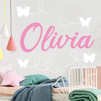Beautiful Game Butterfly Trails Personalised Name Wall Sticker Kids Art Mural Bedroom Decal (120cm width x 60cm height)