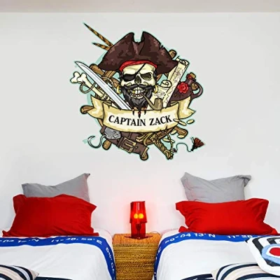 Beautiful Game Pirate Wall Sticker Personalised Name Skull Bedroom Art Decal Mural Kids (60cm height x 60cm width)