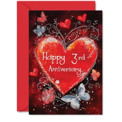 Dazzle them with joy using our exquisite Happy Anniversary Card; a premium quality masterpiece that features a captivating design of 'Happy 3rd Anniversary'. The silver accents on this card make it shine, ensuring it's not just a card but a beautiful keepsake. It's a Personal Gift that shows your them how much you care and the perfect way to express your love and appreciation on their special day. What's Inside: Delve into a world of elegance with the inside print showcasing a lovely verse, 'I loved you then, I love you now...,' as seen in the second image. There's ample space for your personal message. Crafted on a 360-micron thick, environmentally responsible board, this one-sided gloss board offers a luxurious look and feel. Paired with a colored gummed envelope that complements the design, it's ready to be sealed and sent, making it a truly special anniversary gesture. Ink Perfection: Say goodbye to ink smudges! Our high-quality one-sided coated board ensures a smooth writing experience without the worry of smudging. The uncoated side absorbs ink, providing a flawless finish that adds to the card's overall premium quality. Dimensions that Impress: Greet with grandeur using a card sized at 127mm x 178mm, accompanied by an envelope measuring 130mm x 180mm. The card boasts a thickness of 360 microns, ensuring a substantial and impressive presence. British Craftsmanship: Proudly crafted and quality-checked in the UK, our birthday cards are a testament to expert design and manufacturing. Utilizing Forest Stewardship Council certified board, we contribute to responsible forest management. Expect a swift turnaround and a product that reflects the highest standards of quality.