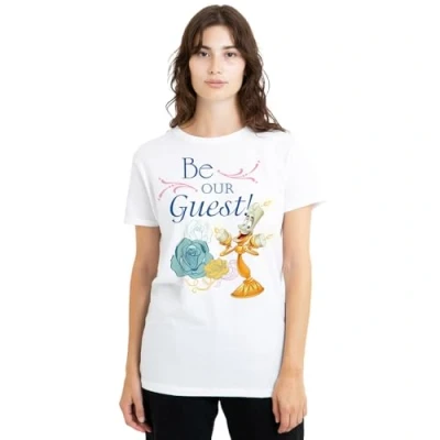 Beauty And The Beast Be Our Guest Ladies T Shirt, White, Small