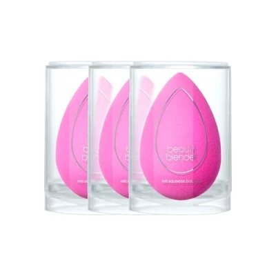 Beautyblender Original Pink 3 Pack Value Set Aqua Activated Make up Schwamm Latexfrei, Tierversuchsfrei, Nicht Toxische Farbstoffe Perfekt für Flüssige Foundation, Puder, BB Creme und Concealer