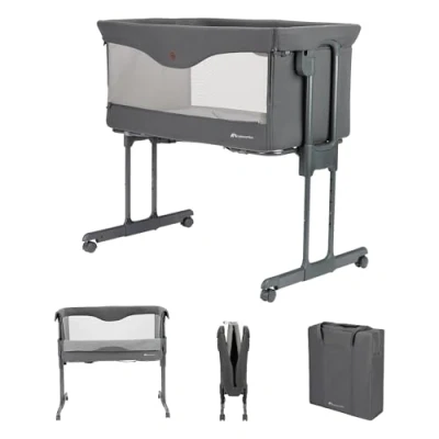 BEBE CONFORT Bebeconfort Amara, Baby Bedside Crib, 0 6 Months, 9 kg, co Sleeper 2 in 1 & Bassinet, 3 Second Compact fold, Easy to Move Around, Handy Travel Bag, Tinted Graphite