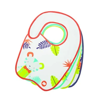 Very soft bibs to respect baby's delicate skin 100% cotton terry towelling for optimum absorbency The bibs have a side Velcro closure, they are easy to take off and put on Machine washable at 40 degrees Size 1-2 suitable for children from 5 months