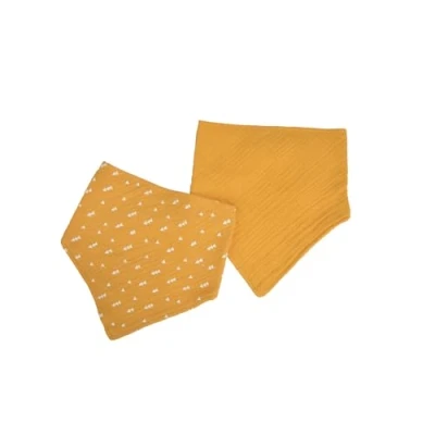 Bébé Douceur Set of 2 Bandana Bibs 100% Cotton Gauze 16 x 41 cm Mustard