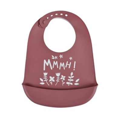 Bébé Douceur Silicone Bib with Catcher 30 x 20.5 cm, Forest Magic Rosewood