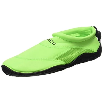 Made of neoprene with net insert and elastic strap Size: UK 3-13 | Package Content: 1 Pair Closure: Elastic Band Non slip rubber sole with removable floats high wear comfort in and around water, the beach Stroll as well as in the swimming pool Surf and bathing shoes by Beco suitable for men, women and children