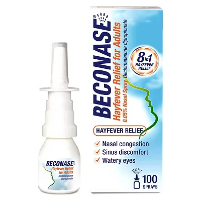 Beconase Hayfever Relief Nasal Spray 8 in 1 Effective for Allergy Symptoms Non drowsy 100 Sprays,1 Count (Pack of 1) (Packaging may vary)