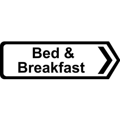 Bed and breakfast Right pointer sign 3mm Aluminium sign 600mm x 140mm Digitally printed and laminated for extra durability 10mm Radius rounded corners, no sharp edges, Manufacturer: KPCM Display ltd