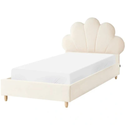 Kids Bed with Sea Shell-Shaped Headboard. Featuring a delightful sea shell-shaped headboard covered in plush velvet, this bed creates a cosy retreat for your little one. The robust frame ensures durability, while the simple design fits beautifully in any bedroom. Easy to maintain and built to last, it’s a great choice for everyday use. Details: Product Type: Kids Bed General Color: Beige Material Type: Fabric Main Material: Velvet Additional Material: Plywood Material Composition: 100% Polyester Fabric Upholstered Back: No Dimensions: Width: 115 cm Length: 213 cm Height: 104 cm Sleeping Surface: 90x200 cm Weight: 17 kg Weight Capacity: 240 kg Offer Includes: 1 x Bed Frame, 1 x Slatted Frame (Number of Slats: 15), Not Included: Mattress, Bedding and Cushions Key Features: Even Distribution of Body Weight, Comfortable and Wide Sleeping Surface, Designed to Complement Any Child's Bedroom, Elegant Accent Piece, High-Quality Upholstery, Easy Care and Durable Materials Assembly Information:
