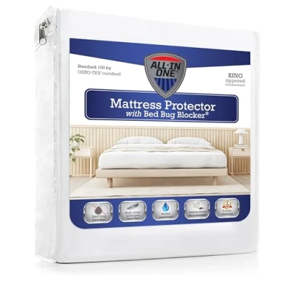 Bed Bug Blocker Original Zippered Mattress Protector (King),White
