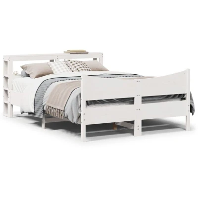 VidaXLGet a better restful night's sleep from this bed frame! It makes a welcoming addition to any bedroom. Stable and long-lasting frame: Solid pinewood is known for its strength and durability. Its straight grains and distinctive knots contribute to its rustic charm.Slatted base for optimal support: The bed frame is equipped with a slatted base for support and breathability for your mattress.Ample storage space: This sleek headboard features two convenient shelves, offering ample storage space to keep all your nighttime essentials within easy reach.Freestanding headboard: The freestanding headboard offers a hassle-free solution for effortless placement and repositioning without the need for wall installation. Good to know:A mattress is not included with this bed. We do offer a various selection of mattresses. You can check our shop for a matching mattress.