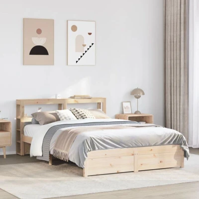 ManoManoGeneral description Enjoy a good night's sleep in this wooden bed frame! It makes a practical and decorative addition to your interior. The bed frame is made of solid pine wood, which is a beautiful natural material known for its straight grain and rustic look. The sturdy wooden frame ensures stability, while the plywood slats provide good weight distribution, keeping the mattress in place during sleep. The versatile headboard offers excellent back support for reading or watching TV and features two convenient shelves for storing nighttime essentials. Technical specifications Bed frame material: Solid pine wood (untreated) Slat material: Plywood Overall dimensions: 224.5 x 146 x 82 cm (L x W x H) Suitable mattress size: 140 x 200 cm (W x L) (mattress not included) Headboard dimensions: 146 x 19 x 82 cm (L x W x H) With storage shelves Assembly required: Yes Delivery contains: 1 x Bed frame, 1 x Headboard Other information