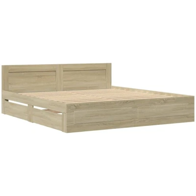 Bed Frame with Headboard without Mattress Sonoma Oak 200x200 cm Vidaxl