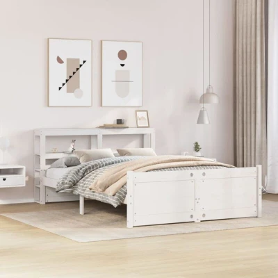 ManoManoGeneral description Enjoy a good night's sleep in this wooden bed frame! It makes a practical and decorative addition to your interior. The bed frame is made of solid pine wood, which is a beautiful natural material with a straight grain and rustic knots. The sturdy wooden frame ensures stability, while the plywood slats provide good weight distribution, keeping the mattress in place during sleep. The functional headboard and footboard help maintain mattress position and offer excellent back support for sitting up in bed to read or watch TV. Additionally, the sleek headboard features two convenient shelves for ample storage of nighttime essentials. Technical specifications Colour: White Bed frame material: Solid pine wood Slat material: Plywood Overall dimensions: 224.5 x 156 x 82 cm (L x W x H) Suitable mattress size: 150 x 200 cm King Size (W x L) (mattress not included) Headboard dimensions: 156 x 19 x 82 cm (L x W x H) With storage shelves Assembly required: Yes Delivery contains: