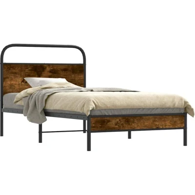 Bed Frame Without Mattress 100x190 cm Smoked Oak Engineered Wood Vidaxl