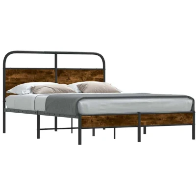 ManoManoGeneral description If you are looking for a robust bed frame for your bedroom, then this classic bed frame featuring an elegant and timeless design is the perfect choice for you! Made from steel, this bed frame offers exceptional sturdiness and stability, supported by stable and durable legs. The versatile headboard provides excellent back support when sitting up in bed to read or watch TV, while also serving as a decorative element. The slatted base ensures optimal support and breathability for your mattress. Technical specifications Colour: Smoked oak Material: Steel, engineered wood Overall dimensions: 196 x 146 x 100 cm (L x W x H) Clearance height under the bed: 27 cm Suitable mattress size: 140 x 190 cm (W x L) (mattress not included) With headboard Assembly required: Yes Other information