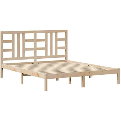 ManoManoGeneral description This classic bed frame, featuring a simple yet timeless design, is a practical and decorative addition to your bedroom. Made from solid pine wood, it showcases a naturally beautiful material with a straight grain and rustic knots. The plywood slats ensure good weight distribution, keeping the mattress securely in place during sleep. Enjoy a comfortable experience with this wooden bed frame and headboard, perfect for reading or relaxing. Technical specifications Bed frame material: Solid pinewood (untreated) Slat material: Plywood Bed frame dimensions: 205.5 x 165.5 x 31 cm (L x W x H) Headboard dimensions: 166 x 4 x 100 cm (L x W x H) Suitable mattress size: 160 x 200 cm (W x L) (mattress not included) Assembly required: Yes Other information Delivery contains: 1 x Bed frame, 1 x Headboard