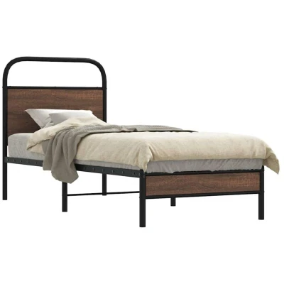 General description If you are looking for a robust bed frame for your bedroom, then this classic bed frame featuring an elegant and timeless design is the perfect choice for you! Made from steel, this bed frame offers exceptional sturdiness and stability. Technical specifications Material: Steel, engineered wood Colour: Brown oak Overall dimensions: 207 x 85 x 100 cm (L x W x H) Clearance height under the bed: 27 cm Suitable mattress size: 80 x 200 cm (W x L) (mattress not included) Compatibility and accessories A mattress is not included with this bed. You can check our shop for a matching mattress. Installation Assembly required: Yes Usage This bed frame comes with a headboard that provides excellent back support when you sit up in bed to read or watch TV, while also serving as a decorative element. The bed frame is equipped with a slatted base for support and breathability for your mattress. Other information