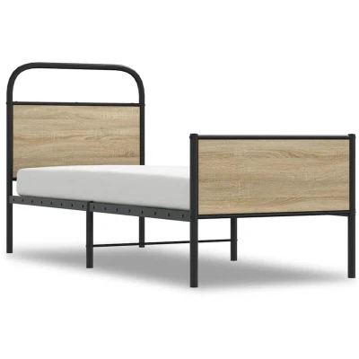 ManoManoGeneral description If you are looking for a robust bed frame for your bedroom, then this classic bed frame featuring an elegant and timeless design is the perfect choice for you! Made from steel, this bed frame offers exceptional sturdiness and stability, supported by stable and durable legs. The functional headboard and footboard keep your mattress in place, while the headboard provides excellent back support when sitting up in bed to read or watch TV. The slatted base ensures optimal support and breathability for your mattress. Technical specifications Colour: Sonoma oak Material: Steel, engineered wood Overall dimensions: 207 x 85 x 100 cm (L x W x H) Clearance height under the bed: 27 cm Suitable mattress size: 80 x 200 cm (W x L) (mattress is not included) With headboard and footboard Assembly required: Yes SKU: 4100383 Other information