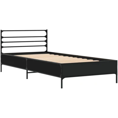 ManoManoGeneral description Get a better restful night's sleep with this stylish bed frame! It makes a welcoming addition to any bedroom. Technical specifications Colour: Black Bed frame material: Engineered wood, metal Slat material: Plywood Overall dimensions: 203 x 93 x 74 cm (L x W x H) Suitable mattress size: 90 x 200 cm (W x L) (mattress not included) Maximum load capacity: 100 kg Assembly required: Yes Usage The plywood slats provide good weight distribution, ensuring that the mattress stays in place with every twist and turn of your body during sleep. The headboard offers excellent back support when sitting up in bed to read or watch TV. Other information A mattress is not included with this bed. Various selections of mattresses are available in our shop. SKU: 845582