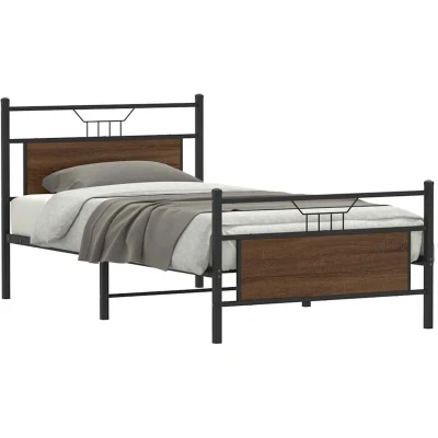 ManoManoGeneral description Get a better restful night's sleep with this stylish bed frame! It makes a welcoming addition to any bedroom, featuring a functional headboard and footboard that keep your mattress in place while providing excellent back support for reading or watching TV. The bed base also offers extra storage space underneath to keep your belongings out of sight. Technical specifications Colour: Brown oak Material: Engineered wood and steel Overall dimensions: 207 x 105.5 x 91.5 cm (L x W x H) Clearance height under the bed: 27 cm Suitable mattress size: 100 x 200 cm (W x L) (mattress not included) Assembly required: Yes Usage Stable and long-lasting frame: The steel construction ensures strength, stability, and durability. Slatted base for optimal support: The metal bed frame is equipped with a slatted base for support and breathability for your mattress. Other information