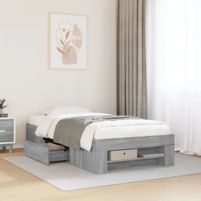 Bed Frame without Mattress Grey Sonoma 75x190 cm Small Single Engineered Wood Vidaxl