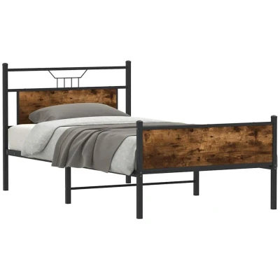 Bed Frame without Mattress Smoked Oak 100x190 cm Engineered Wood Vidaxl