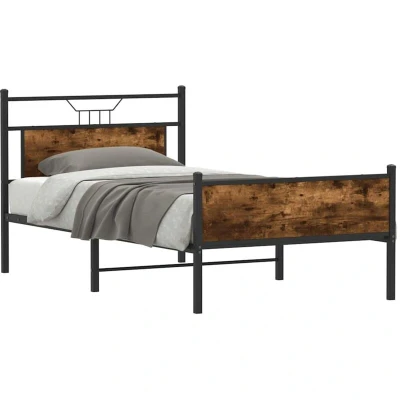 Bed Frame without Mattress Smoked Oak 107x203 cm Engineered Wood Vidaxl