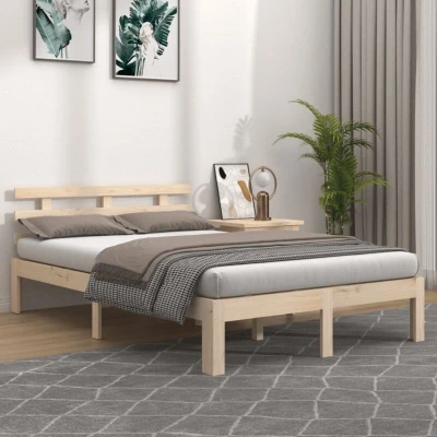 ManoManoGeneral description This wooden bed frame offers a modern touch to your bedroom while serving as a practical and decorative addition to your interior. Made from premium solid pine wood, it features a straight grain and rustic knots that enhance its natural beauty. Technical specifications Material: Solid pinewood (untreated) Slat material: Plywood Overall dimensions: 205.5 x 123.5 x 69.5 cm (L x W x H) Suitable mattress size: 120 x 200 cm (W x L) (mattress not included) Assembly required: Yes Delivery contains: 1 x Bed frame 1 x Headboard Usage The sturdy wooden frame ensures stability and durability. Plywood slats provide good weight distribution, keeping the mattress in place during sleep. The comfortable headboard allows for relaxation while reading or watching movies. Other information