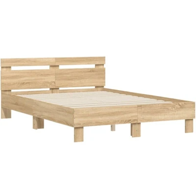ManoManoGeneral description Get a better restful night's sleep from this bed frame! It makes a welcoming addition to any bedroom. Technical specifications Colour: Sonoma oak Bed frame material: Engineered wood Slat material: Plywood Overall dimensions: 193 x 125 x 70 cm (L x W x H) Suitable mattress size: 120 x 190 cm Small Double (mattress is not included) Assembly required: Yes SKU: 3207450 Usage The bed headboard provides excellent back support while sitting up in bed to read or watch TV. The plywood slats ensure good weight distribution, keeping the mattress in place during sleep. Other information
