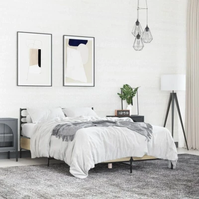 General description Get a better restful night's sleep with this stylish bed frame! It makes a welcoming addition to any bedroom. Technical specifications Colour: Sonoma oak Bed frame material: Engineered wood, metal Slat material: Plywood Overall dimensions: 193 x 123 x 74 cm (L x W x H) Suitable mattress size: 120 x 190 cm Small Double (mattress not included) Assembly required: Yes Usage Durable material: The engineered wood is of exceptional quality with a smooth surface, offering strength, stability, and resistance to moisture. Metal legs and plywood slats: The bed frame includes metal legs and plywood slats to provide your mattress with essential support and breathability. Excellent support: The headboard offers excellent back support when sitting up in bed to read or watch TV. Other information