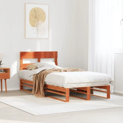 VidaXLTake the modern route to a cool bedroom with this timeless wooden bed frame! It will make a practical and decorative addition to any bedroom. Robust and stable material: Solid pinewood is known for its strength and durability. Its straight grains and distinctive knots contribute to its rustic charm.Slats for optimal support: The bed frame is complete with slats to offer essential support and breathability to your mattress.Excellent support: The headboard of the bed base provides you with excellent back support when you sit up in bed to read or watch TV.Stable and durable legs: This wooden bed is supported by sturdy legs, ensuring stability, safety, and firmness. Good to know:A mattress is not included with this bed. We do offer a various selection of mattresses. You can check our shop for a matching mattress.