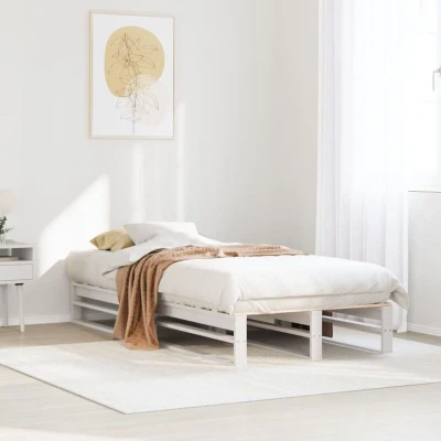 General description Add a modern touch to your bedroom with this classic wooden bed frame! It makes a practical and decorative addition to your interior. The stable and long-lasting frame is made of solid pinewood, known for its strength and durability. Its straight grains and distinctive knots contribute to its rustic charm. The wooden frame ensures sturdiness and stability, while the slats provide good weight distribution, ensuring that the mattress stays in place with every twist and turn of your body during sleep. Technical specifications Colour: White Material: Solid pine wood Overall dimensions: 200 x 100 x 25.5 cm (L x W x H) Suitable mattress size: 100 x 200 cm (W x L) (mattress not included) Assembly required: Yes SKU: 850837 Other information A mattress is not included with this bed. We offer a variety of mattresses that can be checked in our shop for a matching option.
