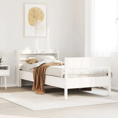 General description Get a better restful night's sleep with this stylish bed frame! It makes a welcoming addition to any bedroom, combining functionality with rustic charm. Technical specifications Colour: White Bed frame material: Solid pinewood Slat material: Plywood Overall dimensions: 218 x 100 x 82 cm (L x W x H) Suitable mattress size: 90 x 200 cm (W x L) (mattress not included) With storage shelves Assembly required: Yes SKU: 3306937 Compatibility and accessories A mattress is not included with this bed. Various selections of mattresses are available in our shop. Installation Assembly is required for this bed frame. Usage The bed frame features a slatted base for optimal support and breathability for your mattress. The versatile headboard provides excellent back support when sitting up in bed to read or watch TV, while also serving as a decorative element. The sleek headboard includes three convenient shelves for ample storage space to keep nighttime essentials within easy